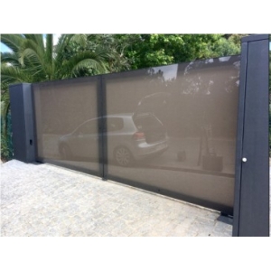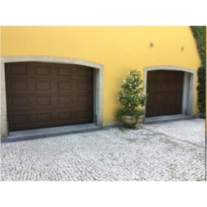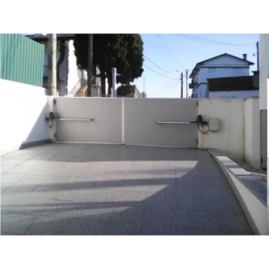 Portão de 5 metros em vidro lacado com sistema de automatismo Dítec subterrâneo. Possui ainda uma central digital, células fotoelétricas e emissores (comandos). A abertura para além dos emissores, também pode ser efetuada através do telemóvel interligado ao sistema domótica.